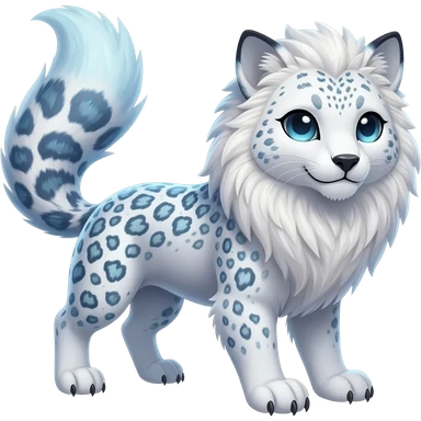 Realistic wild natural elegant pretty beautiful handsome shiny colorful furry 4-legged digitigrade snow-leopard-snowy-owl-arctic-fox-gryphon-griffin-albino-lion-fusion-hybrid-fursona-furry-animal-creature, full body, hyper-realism, long tufted tail emoji