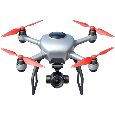 cinematic camera drone object icon, 3-axis gimbal stabilized camera, large lens, carbon fiber arms, glowing status lights, 3D cartoon, mobile game icon style, centered, clean background, no text, no watermark emoji | AI Emoji Generator