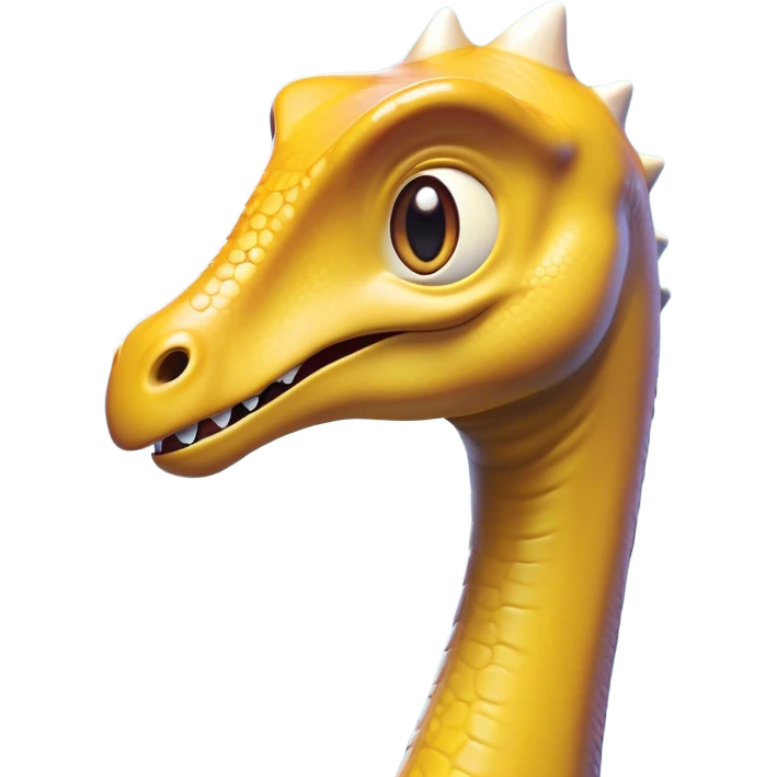 Cinematic Comical Brachiosaurus Portrait Emoji, Head tilted dramatically with an exaggeratedly surprised expression, featuring a tiny, animated head atop an impressively long neck, with wide, comically expressive eyes and a subtly quirky posture, Simplified yet humorously expressive features, highly detailed, glowing with a slightly sassy golden glow, high shine, dramatic yet playful, stylized with an air of cheeky prehistoric mischief, soft glowing outline, capturing the essence of a meme-worthy Brachiosaurus that looks ready to playfully leap its way into viral fame!emoji
