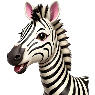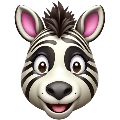 Cinematic Comical Zebra Portrait Emoji, Head tilted dramatically with an exaggeratedly amused expression, featuring a striking, glossy striped fur with bold contrasts, a refined, equine head with a long snout and alert ears, and wide, expressive eyes filled with playful disbelief, Simplified yet hilariously expressive features, highly detailed, glowing with a slightly sassy glow, high shine, dramatic yet playful, stylized with an air of cheeky savannah mischief, bright and endearing, soft glowing outline, capturing the essence of a spirited and over-the-top zebra that feels like it could prance its way into internet fame instantly! emoji | AI Emoji Generator
