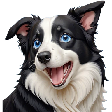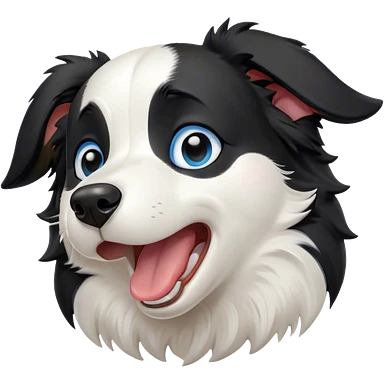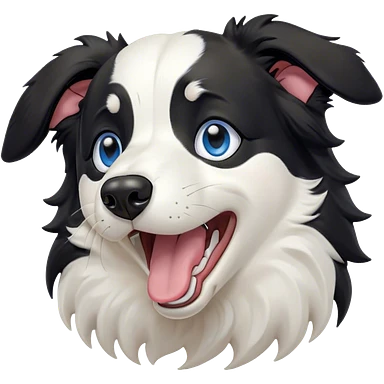 Cinematic Cute Yawning Black and White Border Collie Portrait Emoji, Head tilted slightly with a dramatic, wide-open yawn, showcasing a smooth black and white coat, floppy ears slightly drooping, round blue eyes barely open in drowsy contentment, Simplified yet irresistibly adorable features, highly detailed, glowing with a soft, cozy glow, high shine, relaxed yet alert, stylized with a touch of whimsy, bright and endearing, soft glowing outline, capturing the essence of a sleepy yet spirited herder, so drowsy it feels like it could stretch right out of the screen and curl up for a nap!emoji