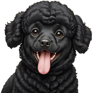 Cinematic Cute Yawning Black Poodle Portrait Emoji, Head tilted slightly with a dramatic, wide-open yawn, displaying a soft, curly jet-black Fur with a refined texture, floppy ears slightly drooping, round dark eyes barely open in drowsy contentment, Simplified yet irresistibly adorable features, highly detailed, glowing with a soft, cozy glow, high shine, relaxed yet expressive, stylized with a touch of whimsy, bright and endearing, soft glowing outline, capturing the essence of a sleepy yet affectionate companion, so drowsy it feels like it could stretch right out of the screen and curl up for a nap!emoji