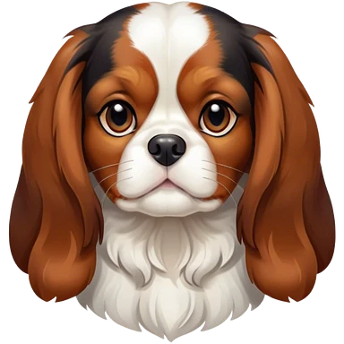 Cinematic Cute Yawning Tri-Colour Cavalier King Charles Spaniel Portrait Emoji, Head tilted slightly with a dramatic, wide-open yawn, soft tri-colour fur with balanced black, white, and tan markings, floppy ears slightly drooping, round brown eyes barely open in drowsy contentment, Simplified yet irresistibly adorable features, highly detailed, glowing with a soft, cozy glow, high shine, relaxed yet expressive, stylized with a touch of whimsy, bright and endearing, soft glowing outline, capturing the essence of a sleepy yet affectionate companion, so drowsy it feels like it could stretch right out of the screen and curl up for a nap!emoji
