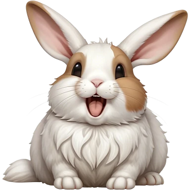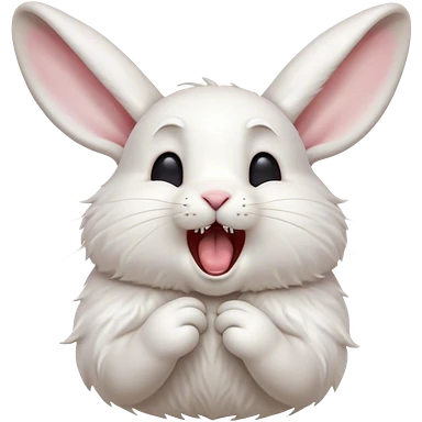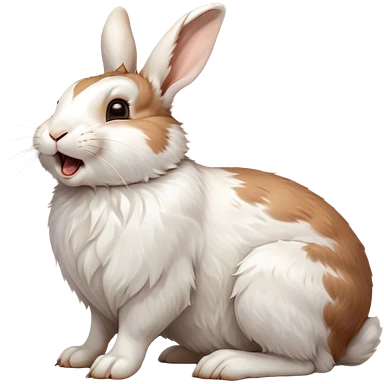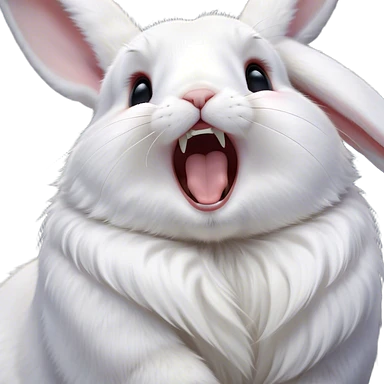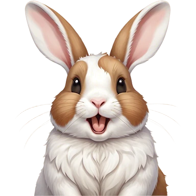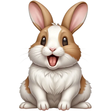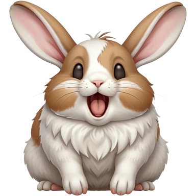 Cinematic Cute Yawning White and Brown Rabbit Portrait Emoji, Head tilted slightly with a dramatic, wide-open yawn, showcasing a soft, patterned fur with crisp white and warm brown patches, floppy ears slightly drooping, round eyes barely open in drowsy contentment, Simplified yet irresistibly adorable features, highly detailed, glowing with a soft, cozy glow, high shine, relaxed yet expressive, stylized with a touch of whimsy, bright and endearing, soft glowing outline, capturing the essence of a sleepy yet affectionate bunny, so drowsy it feels like it could stretch out of the screen and curl up for a nap! emoji | AI Emoji Generator