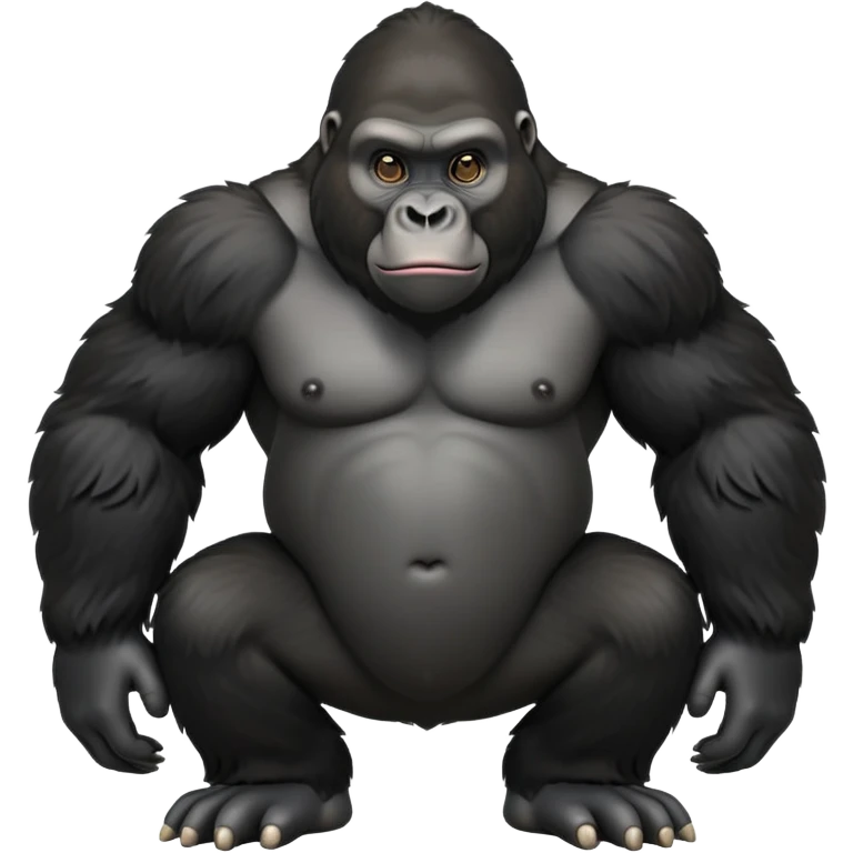 cinematic-friendly relaxed gorilla-realistic-full-body-crouched on all fours-emoji,-broad-frame-poised-with-confidence,-massive-arms-hanging-slightly-forward,-head-tilted-thoughtfully,-thick-black-fur,-deep-dark-eyes-full-of-intelligence,-simplified-yet-realisticemoji