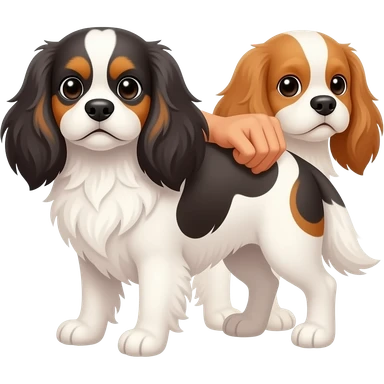 Cinematic Grumpy Blenheim Cavalier King Charles Spaniel Portrait Emoji, Head tilted slightly with a deeply unimpressed expression, thick Blenheim coat with pronounced chestnut and white markings, large, droopy brown eyes narrowed into an unamused glare, ears slightly drooping in exasperation, Simplified yet comically expressive features, highly detailed, glowing with a dry, sarcastic glow, high shine, effortlessly judgmental yet dignified, stylized with a touch of cynicism, bright but brooding, soft glowing outline, capturing the essence of an eternally unimpressed yet endearing companion, so lifelike it feels like it could sigh heavily at you in disdain at any moment! emoji | AI Emoji Generator