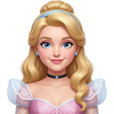 Cinematic Majestic Cinderella Portrait Emoji, rendered in a realistic, vector-style with clean, bold shapes. Depict Cinderella with a refined, noble expression, her fair skin luminous and her long blonde hair styled in an elegant updo, adorned with a delicate tiara. Her attire is a simple, sparkling ball gown that radiates soft pastel hues, glowing with a soft, majestic light and a subtle glowing outline, epitomizing classic royal beauty. emoji | AI Emoji Generator