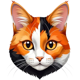 Cinematic Noble Calico Cat Portrait Emoji, Poised and regal, with a striking patchwork fur in vibrant orange, black, and white hues, delicate whiskers and a refined, focused gaze, simplified yet exquisitely detailed, glowing with a soft, moonlit radiance and an air of aristocratic elegance, high shine, exuding dignified intelligence and poised authority, soft glowing outline, capturing the essence of a watchful and noble calico cat that appears ready to grace the screen with effortless majesty! emoji | AI Emoji Generator
