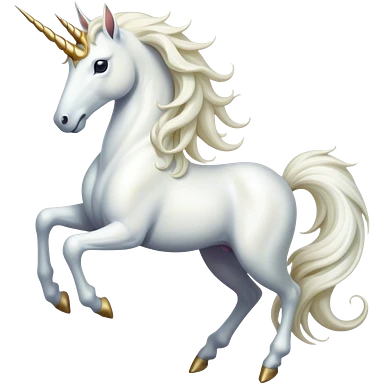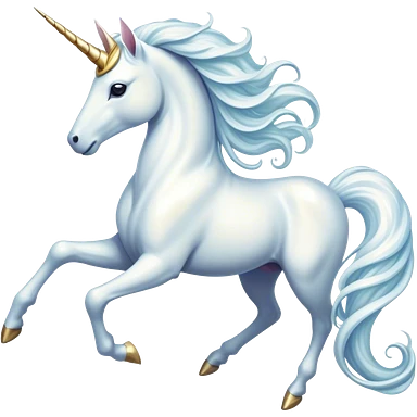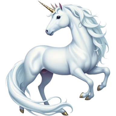 Cinematic Noble Unicorn with wings, slender with a flowing mane and tail and spiraled horn emoji