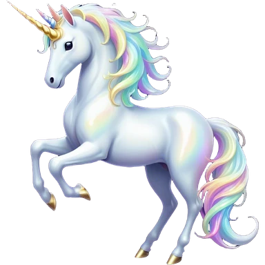 Cinematic pastel-colored unicorn, flowing iridescent mane, big sparkling eyes, tiny rounded hooves, soft chubby cheeks, delicate magical glow surrounding, enchanting and dreamy. emoji | AI Emoji Generator