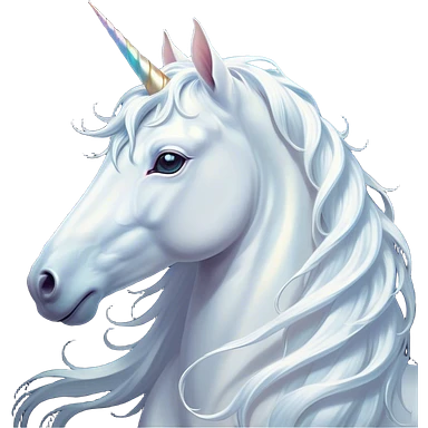 Cinematic Noble White Unicorn Portrait Emoji, Poised and regal, with a slender, ethereal form draped in a pristine white color, a flowing mane and tail, and a glistening, spiraled horn that radiates pure light, Simplified yet sharp and sophisticated features, highly detailed, glowing with a soft, iridescent luminescence, high shine, intelligent and transcendent, stylized with an air of mythical enchantment, focused and serene, soft glowing outline, capturing the essence of a watchful and confident white unicorn that appears ready to prance out of the screen with magical grace! emoji