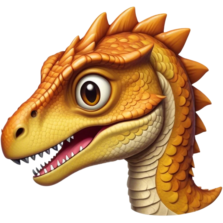 Cinematic Realistic Cute velociraptor/T-rex Portrait Emoji, Head tilted playfully and inquisitively, featuring a compact, slightly rounded build with intricately detailed, textured scales in natural hues and a surprisingly endearing face with bright, curious eyes, rendered with lifelike clarity and warm natural light, high shine, affectionate and quirky, styled with a touch of prehistoric whimsy, soft glowing outline, capturing the essence of a mischievous yet lovable velociraptor/T-rex that seems poised to stomp playfully into your arms!emoji