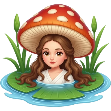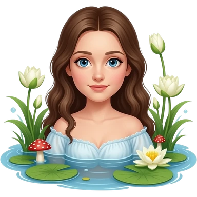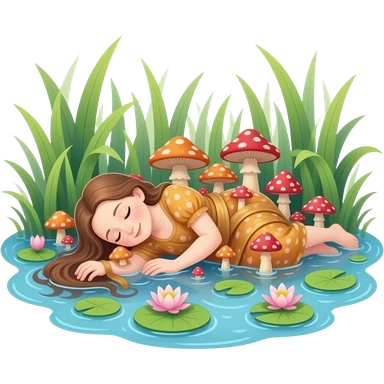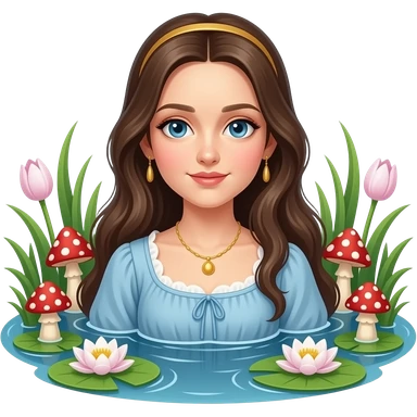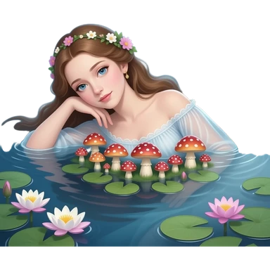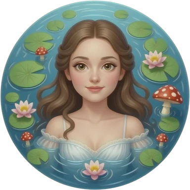 ethereal Ophelia lies in the water wrapped in toadstool and water lily - a scene from the original painting by John Everett Miles emoji