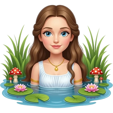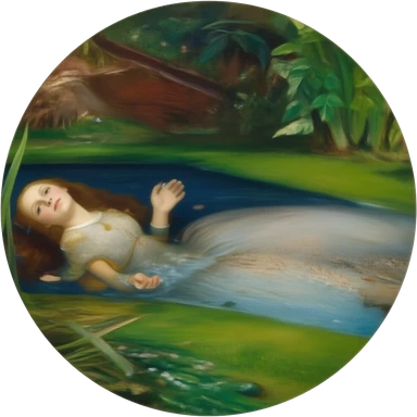 cinematic realistic ethereal Ophelia lies in the water wrapped in grass and water lilies - a scene from the original painting by John Everett Miles emoji | AI Emoji Generator