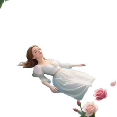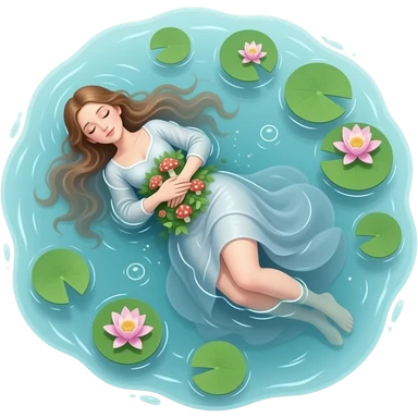 Ophelia floating in water surrounded by flowers, based on the famous painting by John Everett Millais emoji