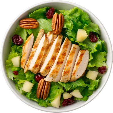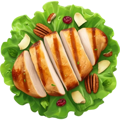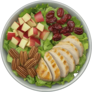 Salad with pecans, grilled chicken, dried cranberries, and apples made with iceberg lettuce emoji