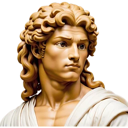 Cinematic Realistic Hercules Portrait, head tilted dramatically with an exaggeratedly amused expression, blending the fierce valor of the Hercules with the classic elegance of Michelangelo's David. His light tan skin and thick, curly, golden brown hair, rendered with meticulous classical detail, frame a face of heroic determination and playful charm. Clad in a gracefully draped white robe adorned with subtle golden embellishments and accented by a distinguished Greek laurel wreath, dynamic lighting accentuates both his formidable physical power and his approachable, spirited demeanor.emoji