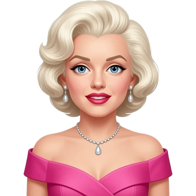 Cinematic Realistic Marilyn Monroe Emoji, featuring a glamorous, high-detail portrayal of the legendary Hollywood star. Her iconic platinum curls, radiant smile, and signature red lips are illuminated by dramatic, vintage-style lighting, evoking the timeless allure of classic cinema. emoji | AI Emoji Generator