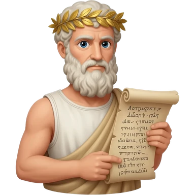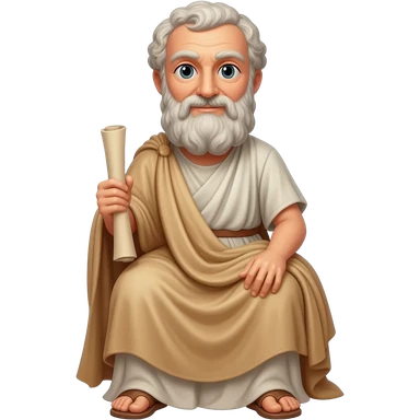 Cinematic Realistic portrait of Aristotle the philosopher, depicted as a wise, contemplative figure in detailed ancient Greek attire, with a textured draped robe and thoughtful expression, bathed in soft classical lighting that highlights his timeless intellect. emoji | AI Emoji Generator