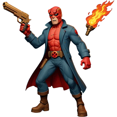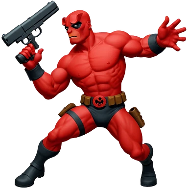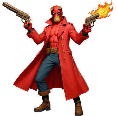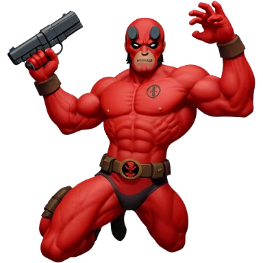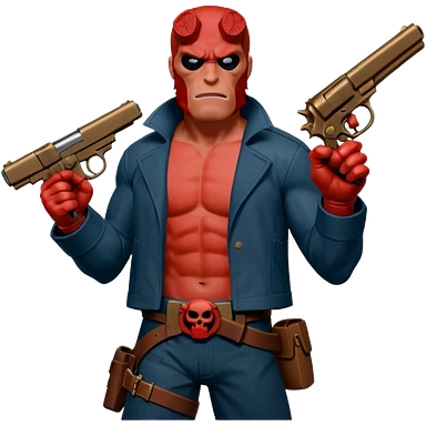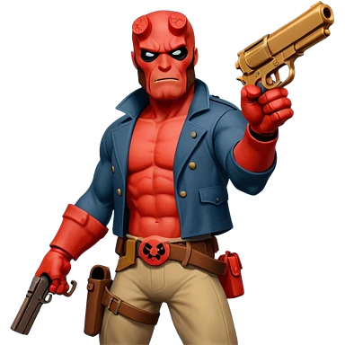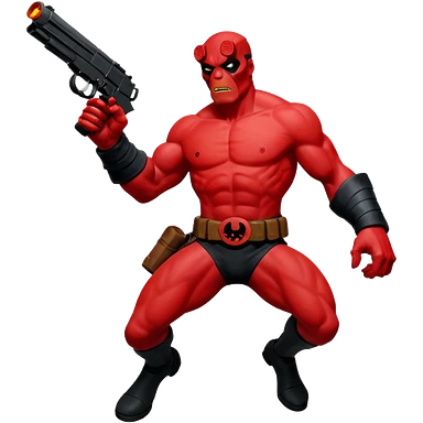 cinematic realistic superhero Hellboy by Mike Mignola jumps and shoots emoji