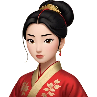 Cinematic Realistic Serene Mulan Portrait, showing Mulan (chest and above) with radiant, smooth skin and delicately detailed dark hair swept back in a neat bun. Her gentle, reflective expression is captured with soft natural lighting that highlights the nuanced textures of her features and traditional attire in muted hues. The composition glows with an inviting, natural radiance and subtle shadows, evoking a calm and introspective mood that speaks of quiet strength and enduring beauty.emoji