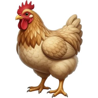cinematic surrealistic - a huge ivory hen with grown thick male feet like a Hobbit, the hen's head is disheveled, shown at a 45 degree angle emoji | AI Emoji Generator