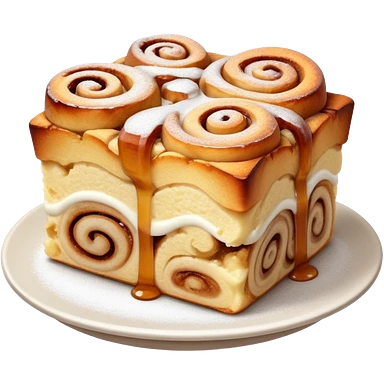 Cinnamon roll bread pudding dusted with powdered sugar emoji