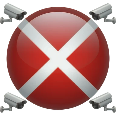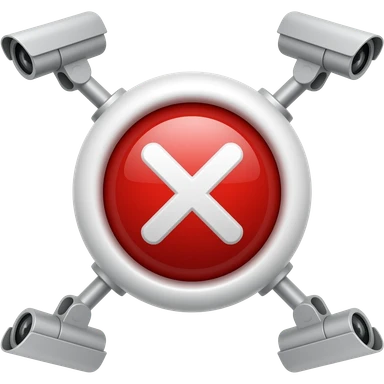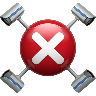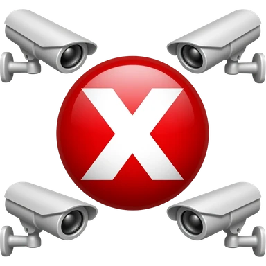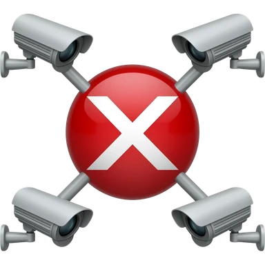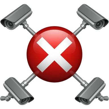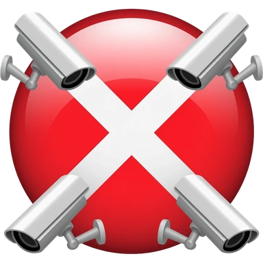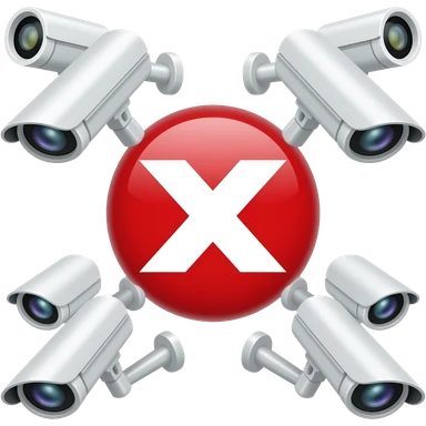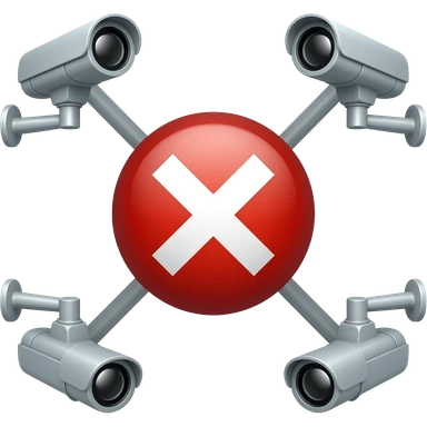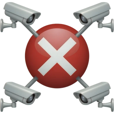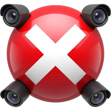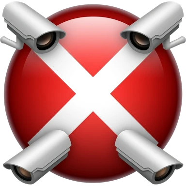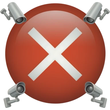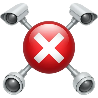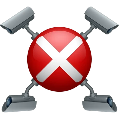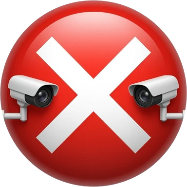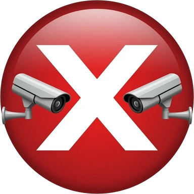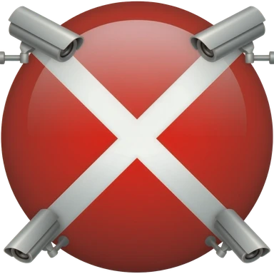 Red filled circle with white X, arrow on end points of CCTV cameras emoji