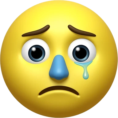 Círculo amarelo sem sobrancelhas, com metade do nariz azul (a imagem está borrada), suor e expressão de ansiedade no rosto. emoji