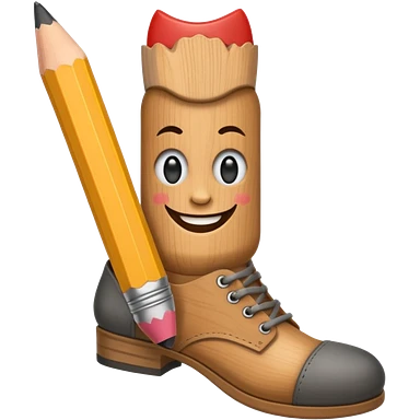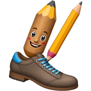 a pencil with a mad smile face and has human feet emoji