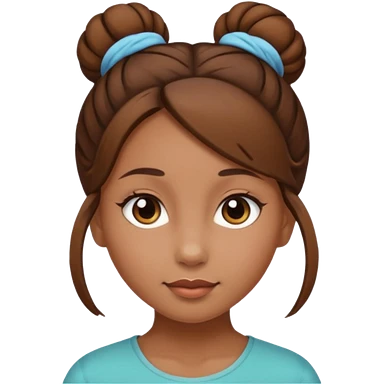 Girl with light brow skin and brown hair in a single bun emoji