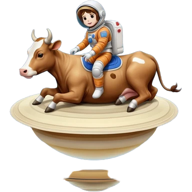 a cow and saturn but the cow head on top of saturn and human feet at the bottom emoji