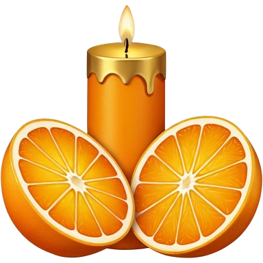 Citrus candle – orange wax in gold tin with slice design emoji | AI Emoji Generator