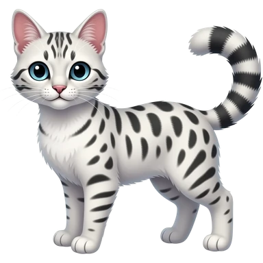 White soft silky smooth vernid-Civet-Genet-Bengal-Cat-Bobcat-Caracal-Serval-animal-hybrid-mix fantasy creature LiLaiRa Kamirah Falvie whiskers paws full body gradient iridescent patterns tufted tail feline emoji