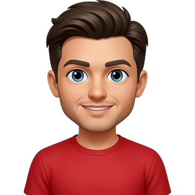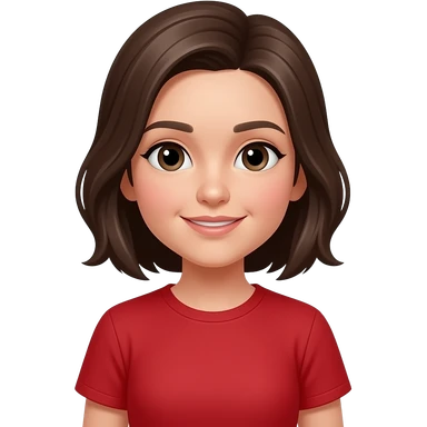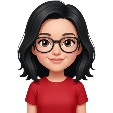 cjeuveux juste en dessous des epaules+ brune + visage long +cheuveux noir+ lunettes stp+ tshirt rouge emoji