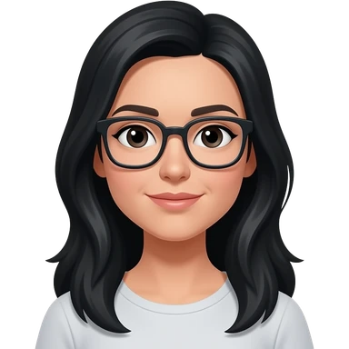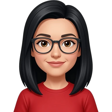 cjeuveux mi-long + brune + visage long +cheuveux noir+ lunettes stp emoji | AI Emoji Generator