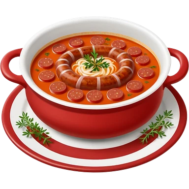 emoji of Rougail saucisse meal. Typical Reunion island meal. Sliced sausage in tomato reduced soup with thym emoji