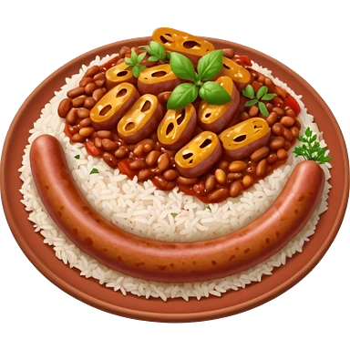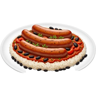 emoji of Rougail saucisse meal. Typical Reunion island meal. Sliced sausage in tomato reduced sauce with thym emoji