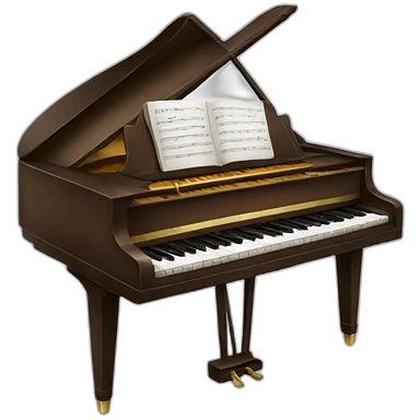 emoji de piano de cauda preto com notas musicais douradas, ambiente refinado, estilo Nova York clássico emoji