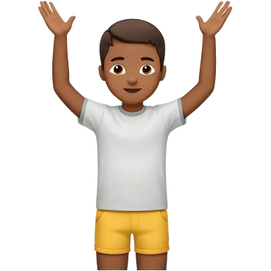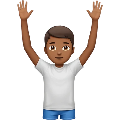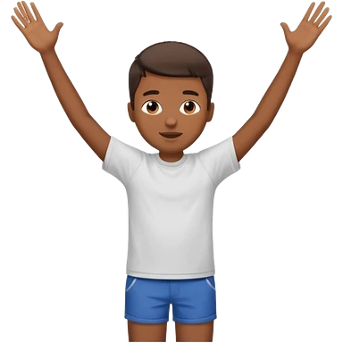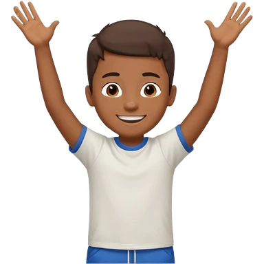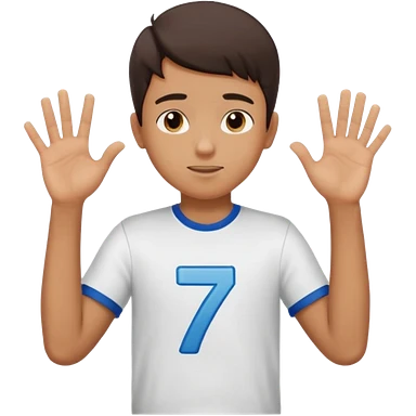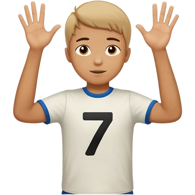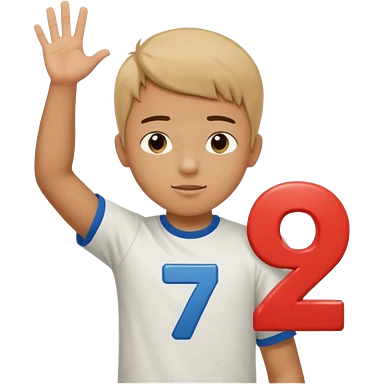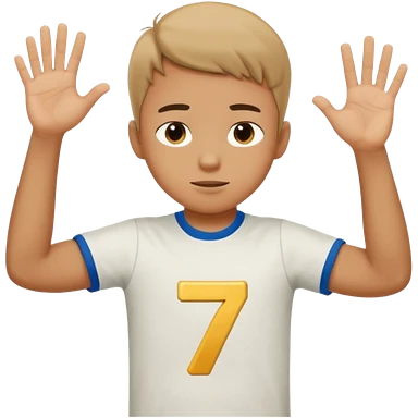 Boy doing 67 with hands in the air up to his chest and he is holding 6 in one hand and seven in the other emoji