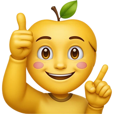 Classic apple style yellow emoji face smiling with hand in frame with their thumb and pointer finger crossed on the same hand emoji | AI Emoji Generator