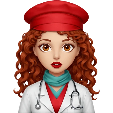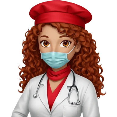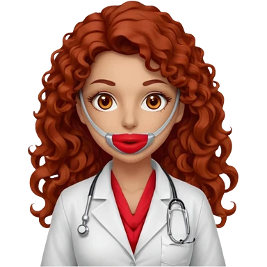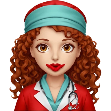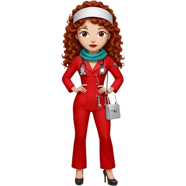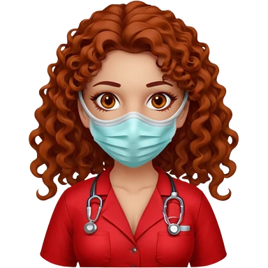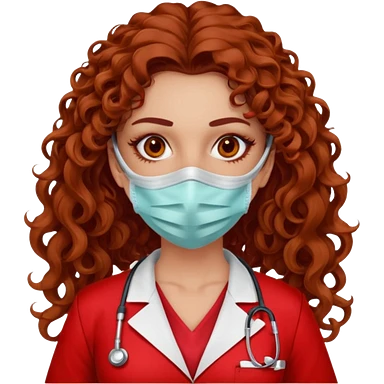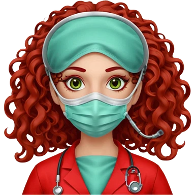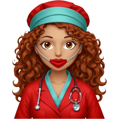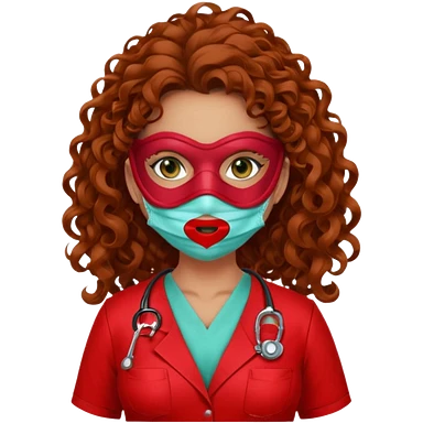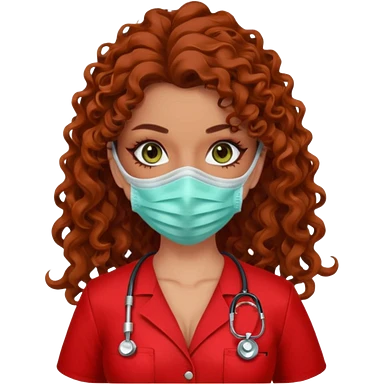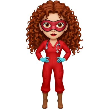 Sensual Spanish Lilith core evil surgeon.red outfit. Surgeon has hazel eyes. Her hair is BROWN. Hair is also long and curly. wearing a sexy surgeon outfit with platform heels.she is a calculated killer. She covers only her mouth and nose with mask to hide identity emoji