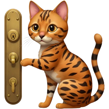 A bobtailed bengal turning a doorknob emoji