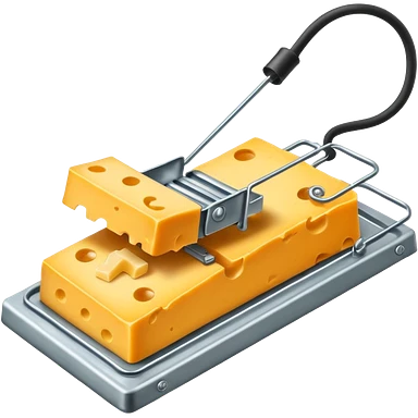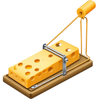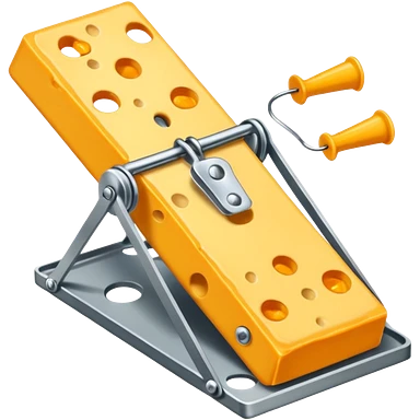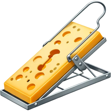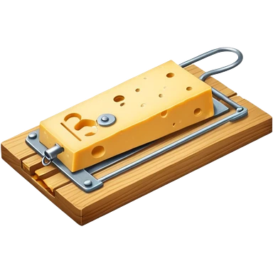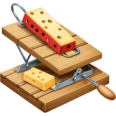 A mousetrap with a piece of cheese on it. The mousetrap should be classic wooden style, with the cheese placed on the trigger emoji