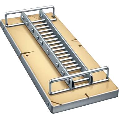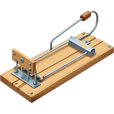 A 3D emoji in iOS emoji aesthetic style of a classic mousetrap without cheese, showing a wooden base and metal spring mechanism, clean minimal design, bright lighting, glossy Apple-style look, white background. emoji