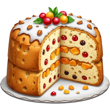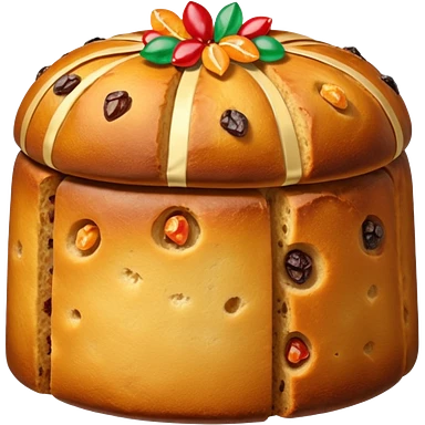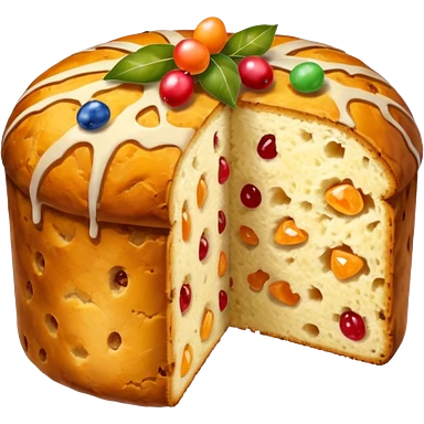 panettone classico, fallo tagliato con una fetta e con la carta a torno emoji