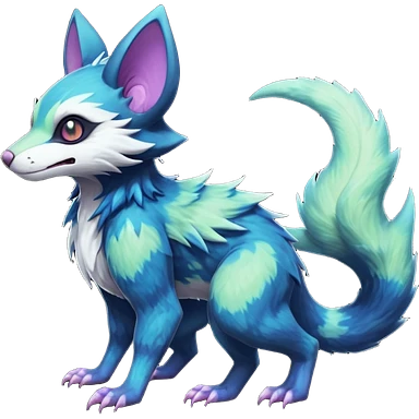 Realistic Sharp swampy mossy elemental detailed Colorful translucent luminescent glowing Trico-Noibat-batty-Sergal-Furret-Ferret-Wolverine-Vernid-furry-fursona-fusion-Fakemon-animal-hybrid-creature, full body emoji