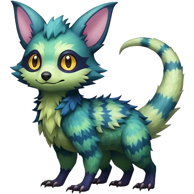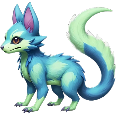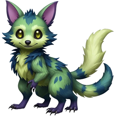 Realistic Sharp swampy mossy elemental ivy detailed Colorful translucent luminescent glowing Trico-Noibat-batty-Sergal-Furret-Ferret-Wolverine-Vernid-furry-fursona-fusion-Fakemon-animal-hybrid-creature, full body emoji