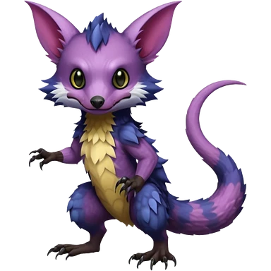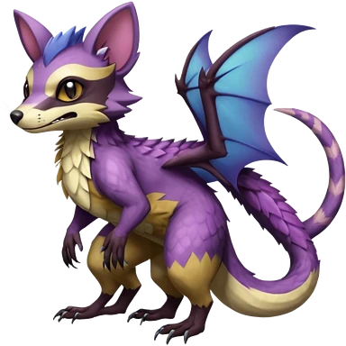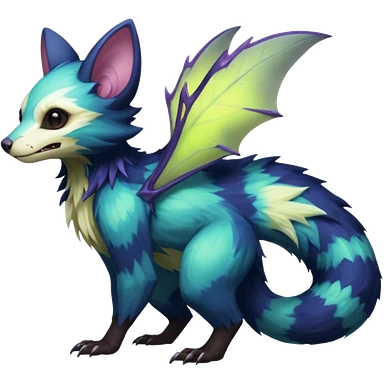Realistic scaly swampy elemental detailed Colorful Trico-Noibat-batty-Sergal-Furret-Ferret-Wolverine-Vernid-furry-fursona-fusion-Fakemon-animal-hybrid-creature, full body emoji