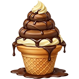 Vanilla Ice cream on a waffle cone dripping a little emoji